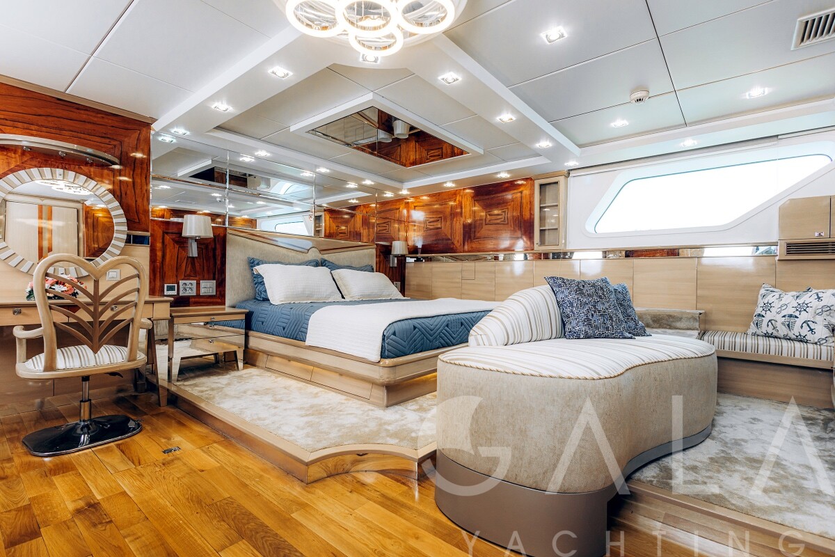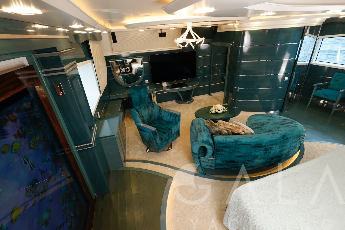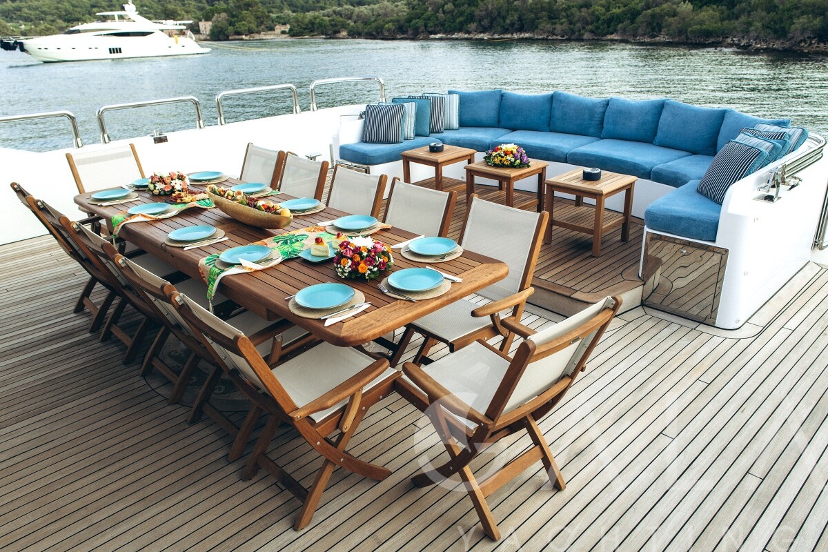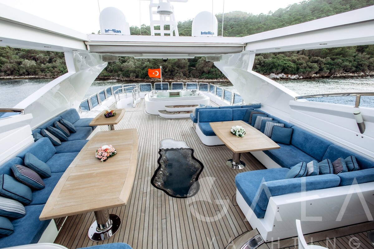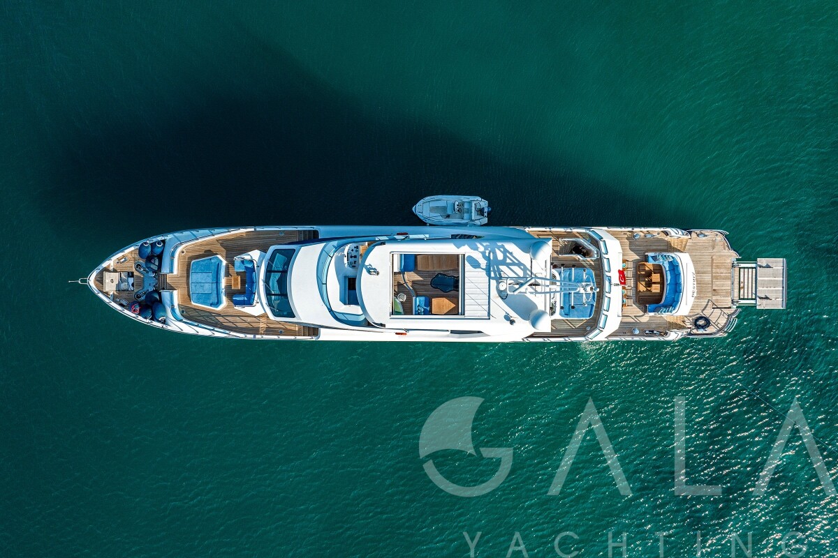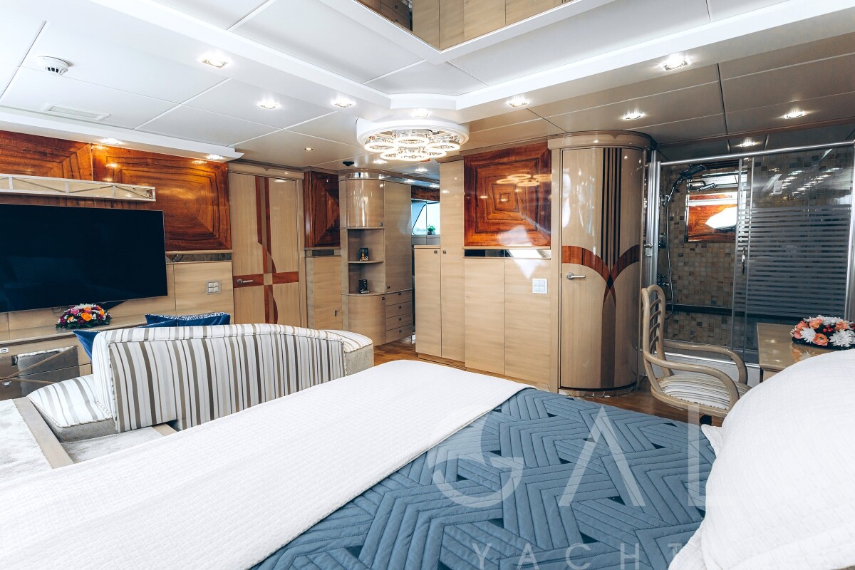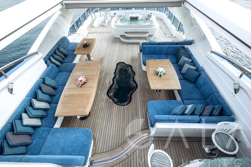 Jacuzzi on flybridge, Snorkelling equipment, Deck shower, Zero Speed Stabilizers