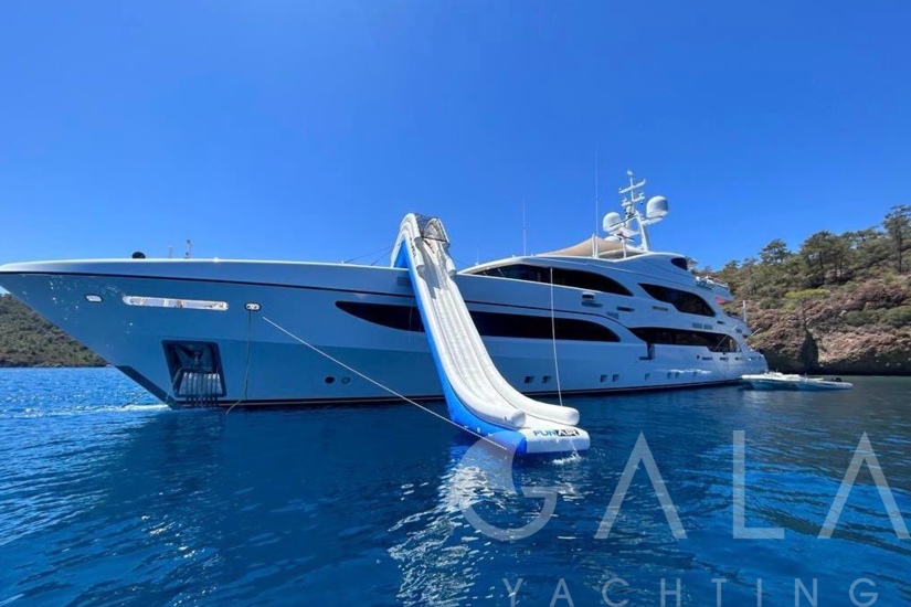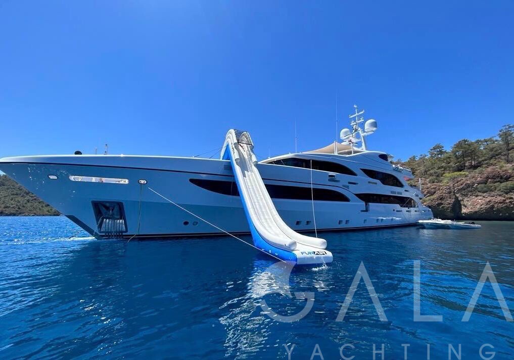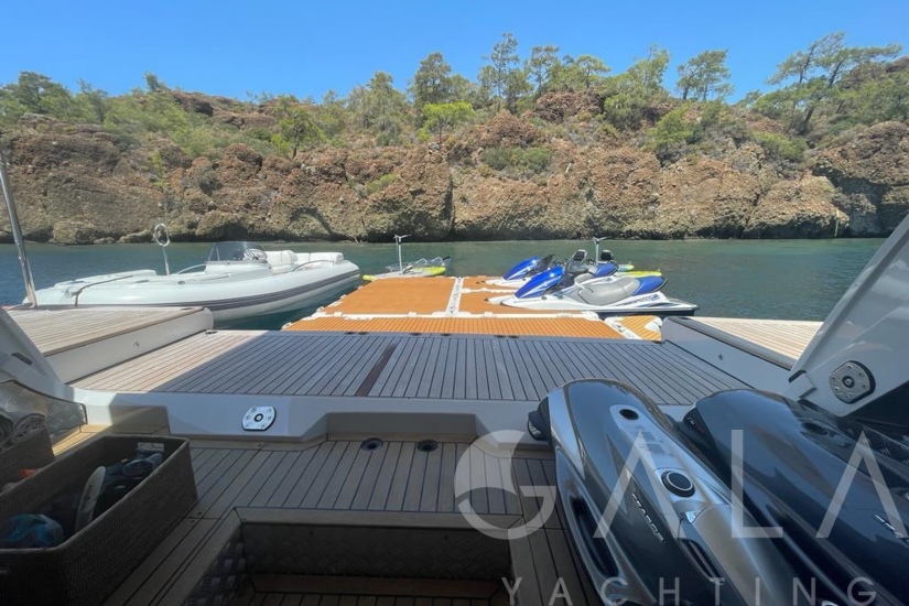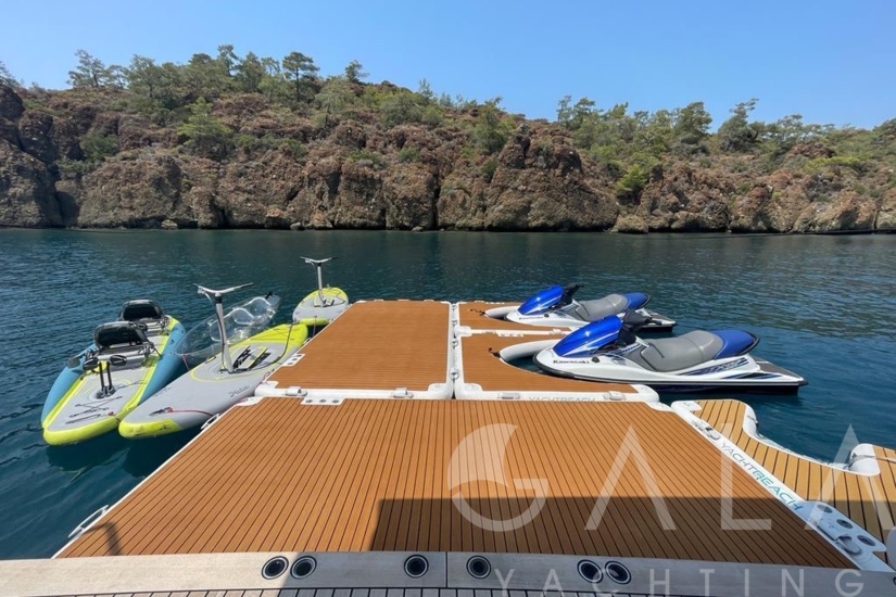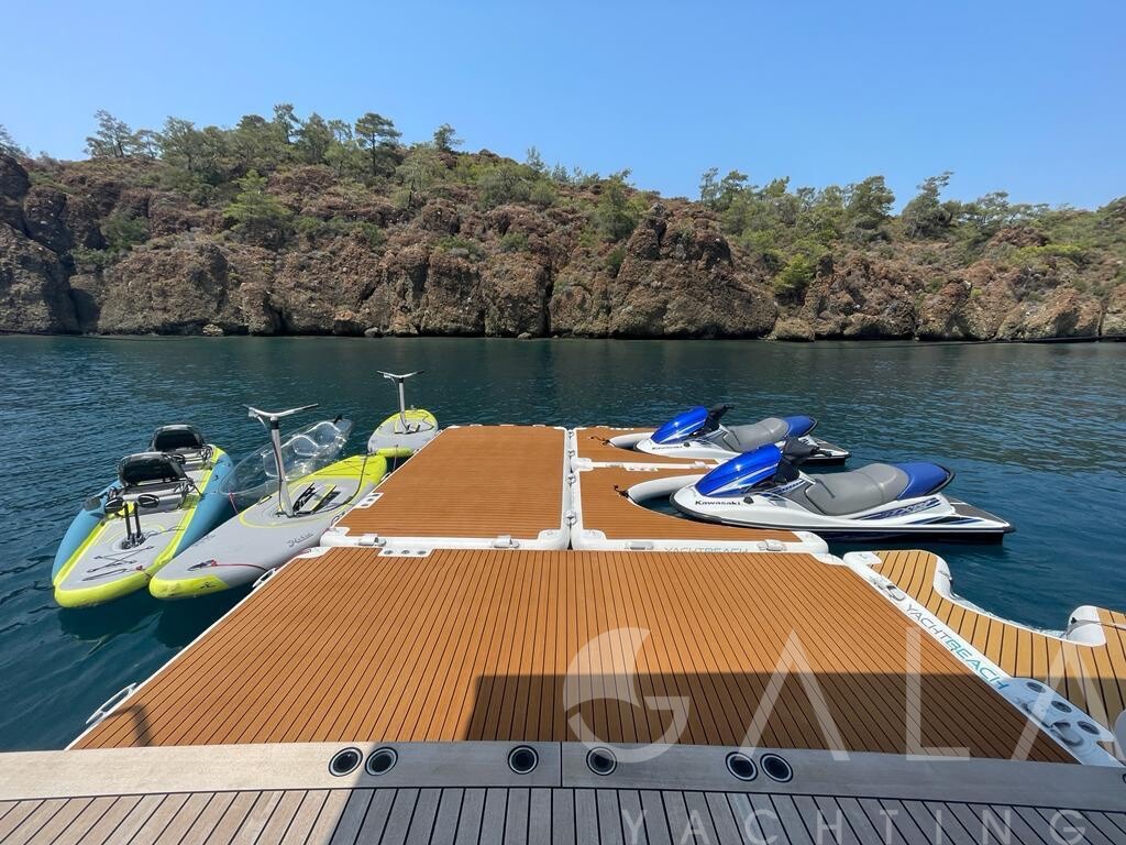 2 x Kawasaki Jet-ski, 5 x Full Dive Sets + Compressor, 1 Pcs Transparent Double Person Kayak, 1 Pcs Paddle Board - Hobie Mirage I Eclipse 11 ( Inflatable ), 1 Pcs Canoe - Hobie Mirage I Trek 14 Duo ( Inflatable ), 1 Pcs Scuba Jet Pro All-In One, 1 Pcs Seabob F5SR, 1 Pcs E Surf – Awake Ravik 3, 1 pcs E-Foil – Lift Foil E4, 1Pcs–Slide(6m) –FunAir, 1 Pcs Swimming Pool – Yacht Beach, 4 Pcs Swimming Platform – Yacht Beach, 2 pcs Towable Ringo, 1 Pcs 2 Person Towable Ringo, 2 Pcs Waterskies, 1 Pcs Wakeboard, 1 Pcs Banana, 1 Pcs Ringo (Double)