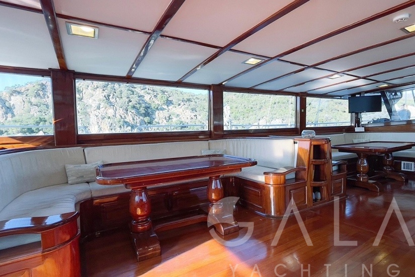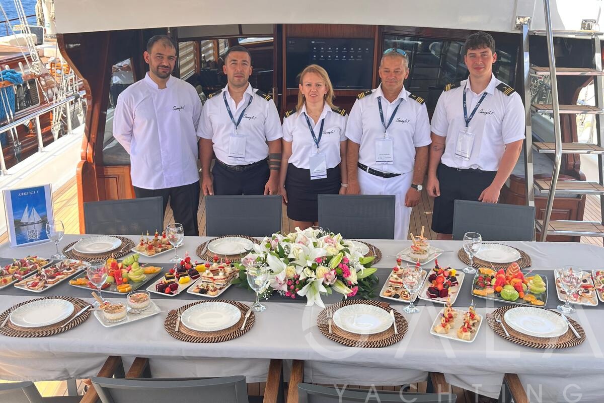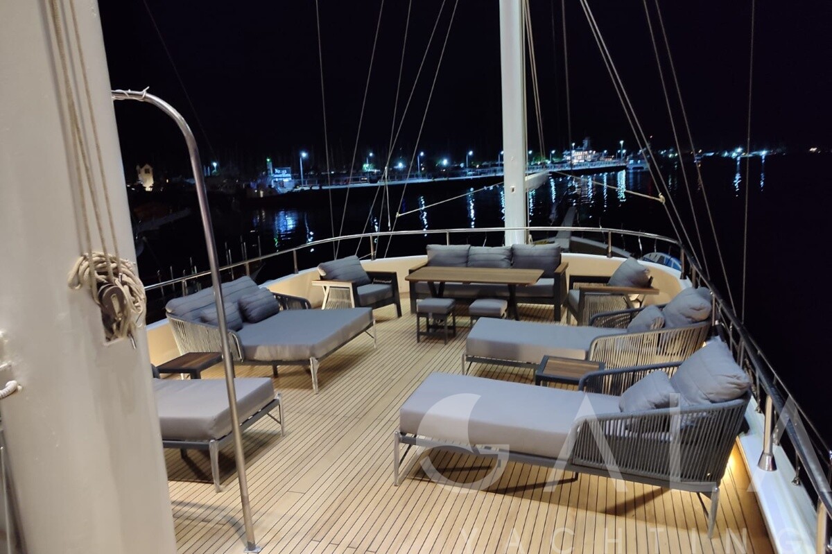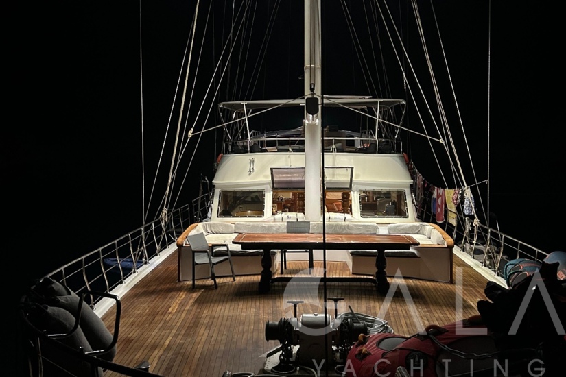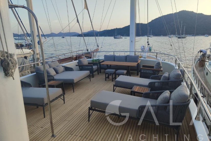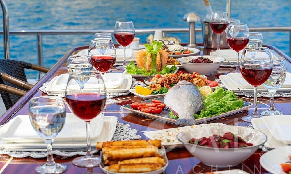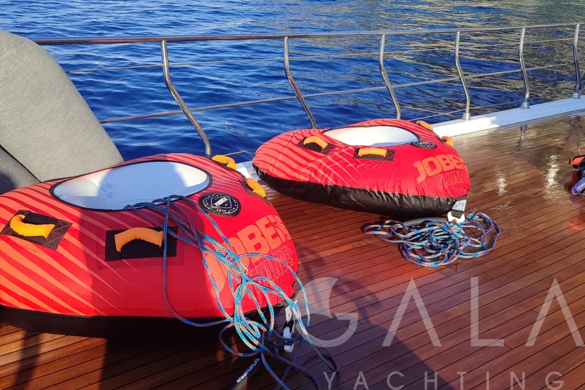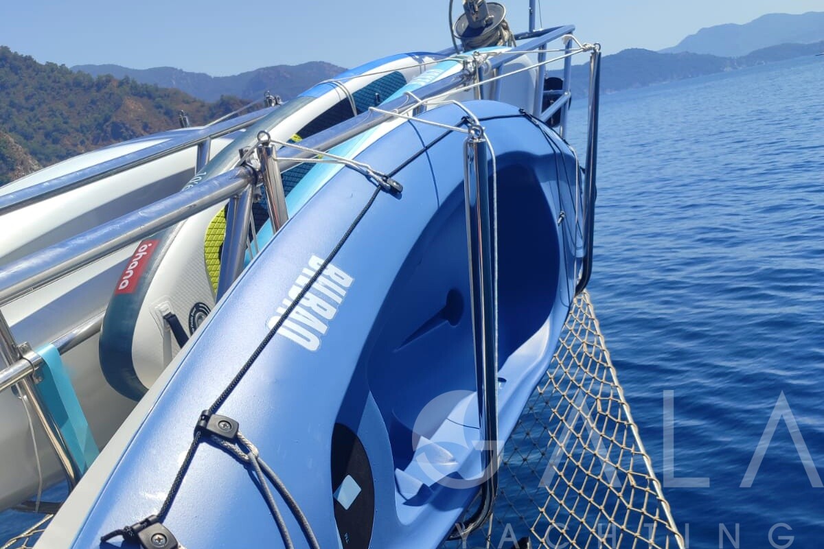 Snorkelle yüzme ekipmanları, Olta takımı, Güneş şemsiyesi, Güneşlenme minderleri, Güverte duşu, Deniz merdiveni